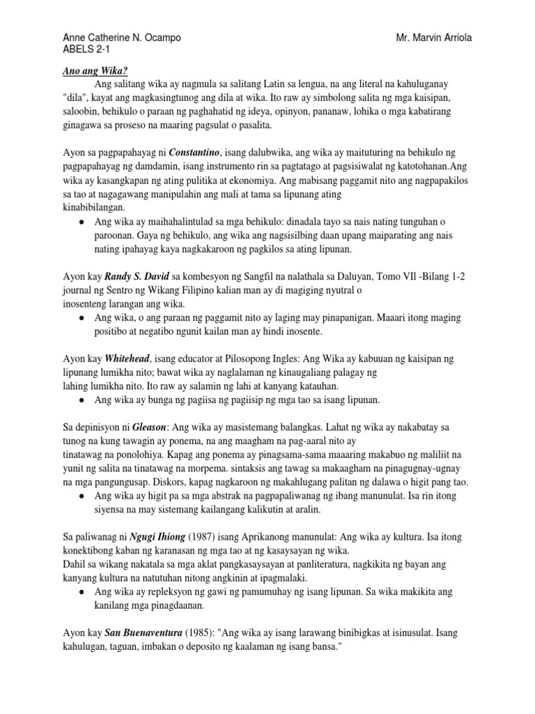 Ang wika ay nakabatay sa kultura - nagkakaiba-iba ang wika sa daigdig dahil sa pagkakaiba-iba ng kultura ng mga bansa. Ang mga katangian naman ng wika ay dinamiko may lebel o anatas wika ay komunikasyon malikhain o natatangi kaugnay ng kultura at gamit sa lahat ng uri ng disiplina. Kahalagahan ng Wika sa Pang-araw-araw nating buhay.